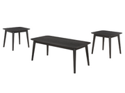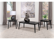 En medio del ambiente moderno, un juego de mesa auxiliar de café de tres piezas se erige como un faro de inspiración de mediados de siglo. La mesa de centro, junto con sus mesas auxiliares gemelas, cuenta con un acabado negro tan profundo que parece guardar secretos dentro de su veta de madera de chapa de fresno.