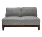 Moderno Love Seat sin brazo modular, con patas de madera, su estructura es de madera sólida, huele espuma de alta densidad y tapizado con tela color beige. Recuerda que puedes adquirirla aquí mismo y recibirla en la comodidad de tu hogar.
